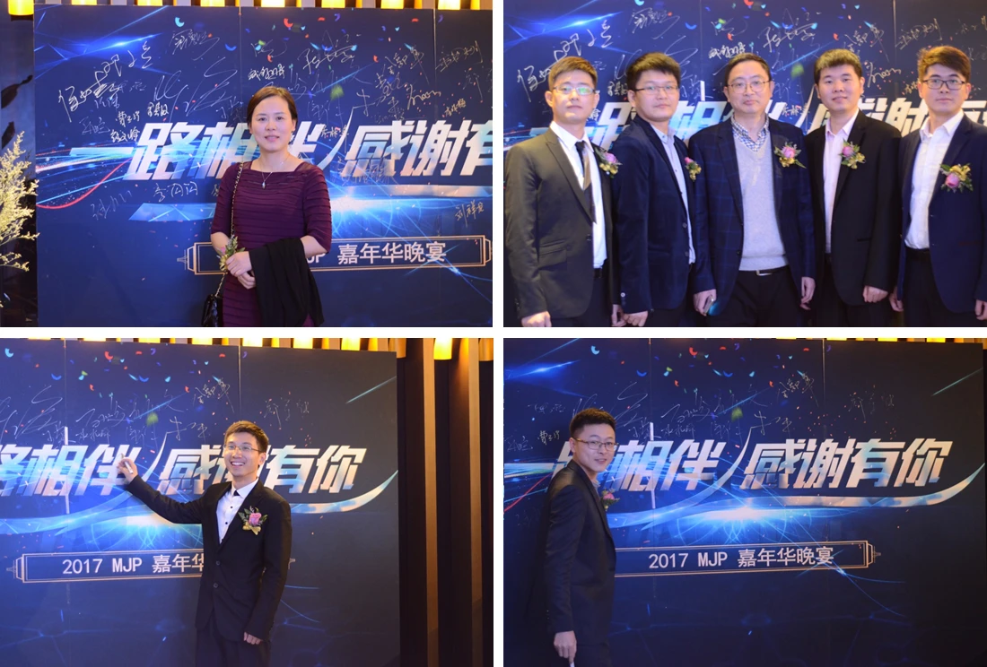 晚会伊始,各位盛装打扮的同事们开始了签到仪式,男士们西装革履,气宇非凡,女士们绚丽多姿,婀娜动人,貌若天仙。在背景墙上,大家留下自己这一年奋斗的痕迹,有汗水,有收获,有感恩,当然也有回报!