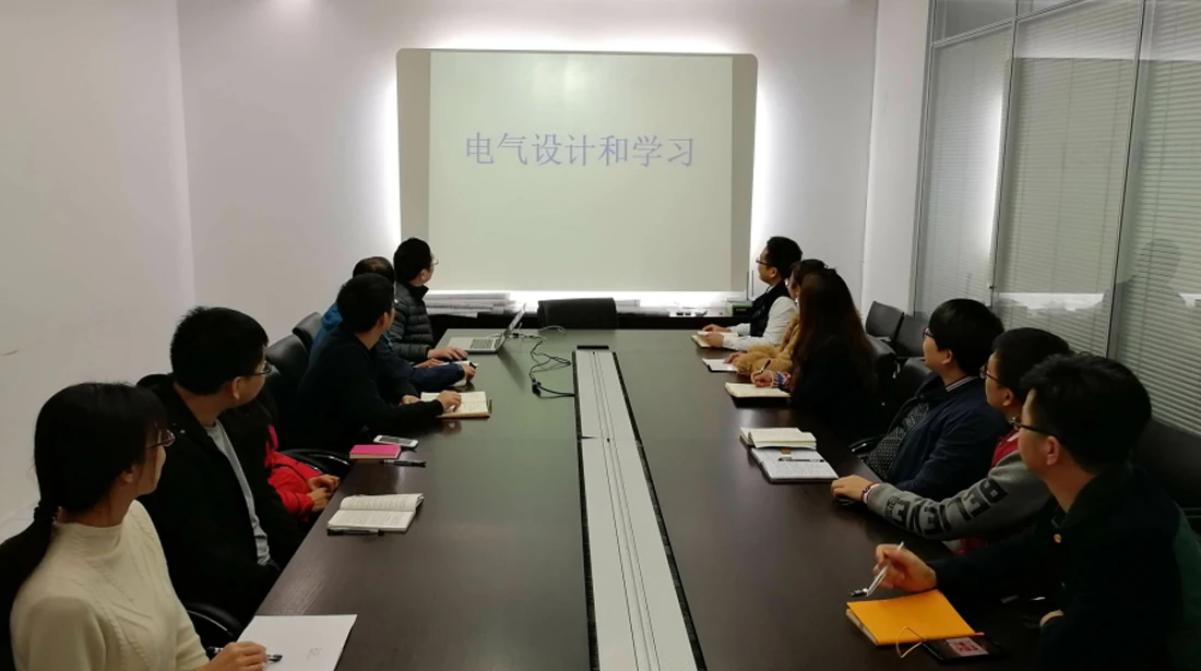 公司电气设计组定期召开技术交流会,研讨设计技术难题;组织学习新技术及各类规范;交流设计经验和体会。